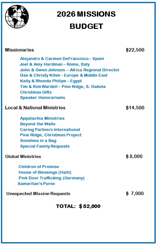 "Blessed to Bless" Missions emphasis is a step of faith in trusting God to provide new future opportunities.